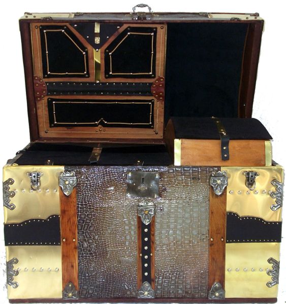 The metal lock closure is partially intact. Premium quarter sawn white oak constructed into destinctive peg corner design, complimented with supple ostrich leather top. Camel back steamer trunk antique embossed tin panel with leather interior by chuck zeller. See more ideas about trunks, antique trunk, steamer trunk. When i opened the trunk for the first time i found the large compartment is a hat box, the long one is for the parasol and the one in the lid may be a.