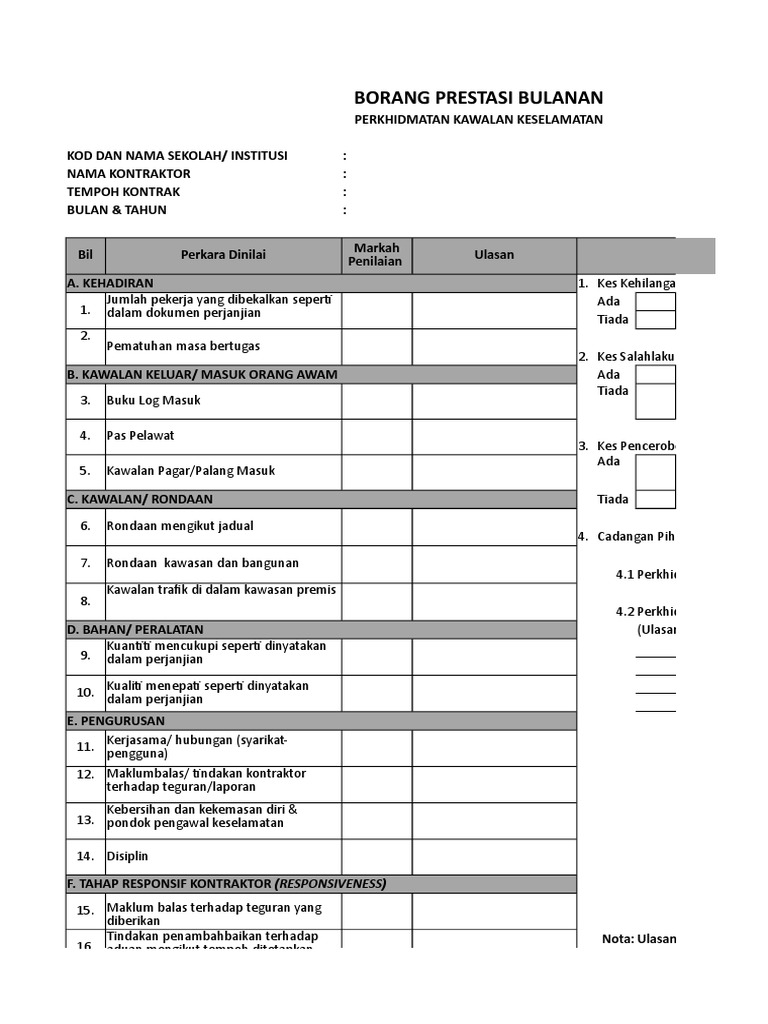 Contoh Borang Penilaian Prestasi Pekerja / Contoh sesuatu insiden positif ialah pekerja rela menghadiri sesi latihan apabila diminta oleh penyelianya.