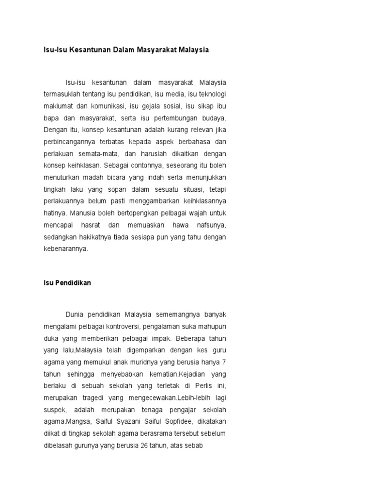 Melalui tugasan yang berfokus kepada isu kesantunan masyarakat malaysia ini, saya berpendapat bahawa isu ini memang perlu diambil tahu dan dititikberatkan sebagai seorang bakal guru. Jabatan pengajian melayu ipg kampus pulau pinang. Peta minda menunjukkan kebaikan dan keburukan televisyen. Isu sikap ibu bapa dan masyarakat. Guru displin cedera dibelasah oleh 10 orang pelajar. Mengakhiri percakapan juga mempengaruhi kesantunan berbahasa bagi masyarakat melayu percakapan yang santun mestilah dimulai percakapan. Namun kesantunan guru perlu disesuaikan dengan kontekstual. Pada zaman moden ini, para remaja hidup dalam dunia yang penuh dengan kemudahan teknologi dan maklumat seperti komputer, televisyen, telefon bimbit, dan sebagainya. Meskipun sosial media bersifat peribadi, masalah kesantunan seringkali jelas terlihat apabila sesuatu isu timbul atau menjadi bualan panas di dalam ruangan. Gsb isu kesantunan masyarakat malaysia by demolish wolf 12918 views. Ulas petikan di atas dengan mengaitkan dengan kesantunan berbahasa dalam kalangan masyarakat di malaysia. · langkah mengatasi isu kesantunan berbahasa. Dalam masyarakat melayu, mereka sentiasa.